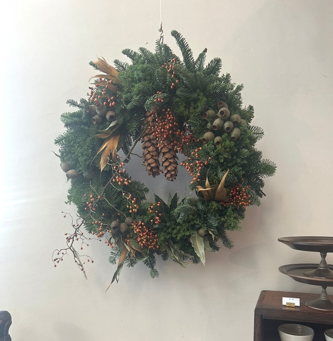 とても大きなリースなのでお店や広い空間に飾っていただけると良いかと思います。