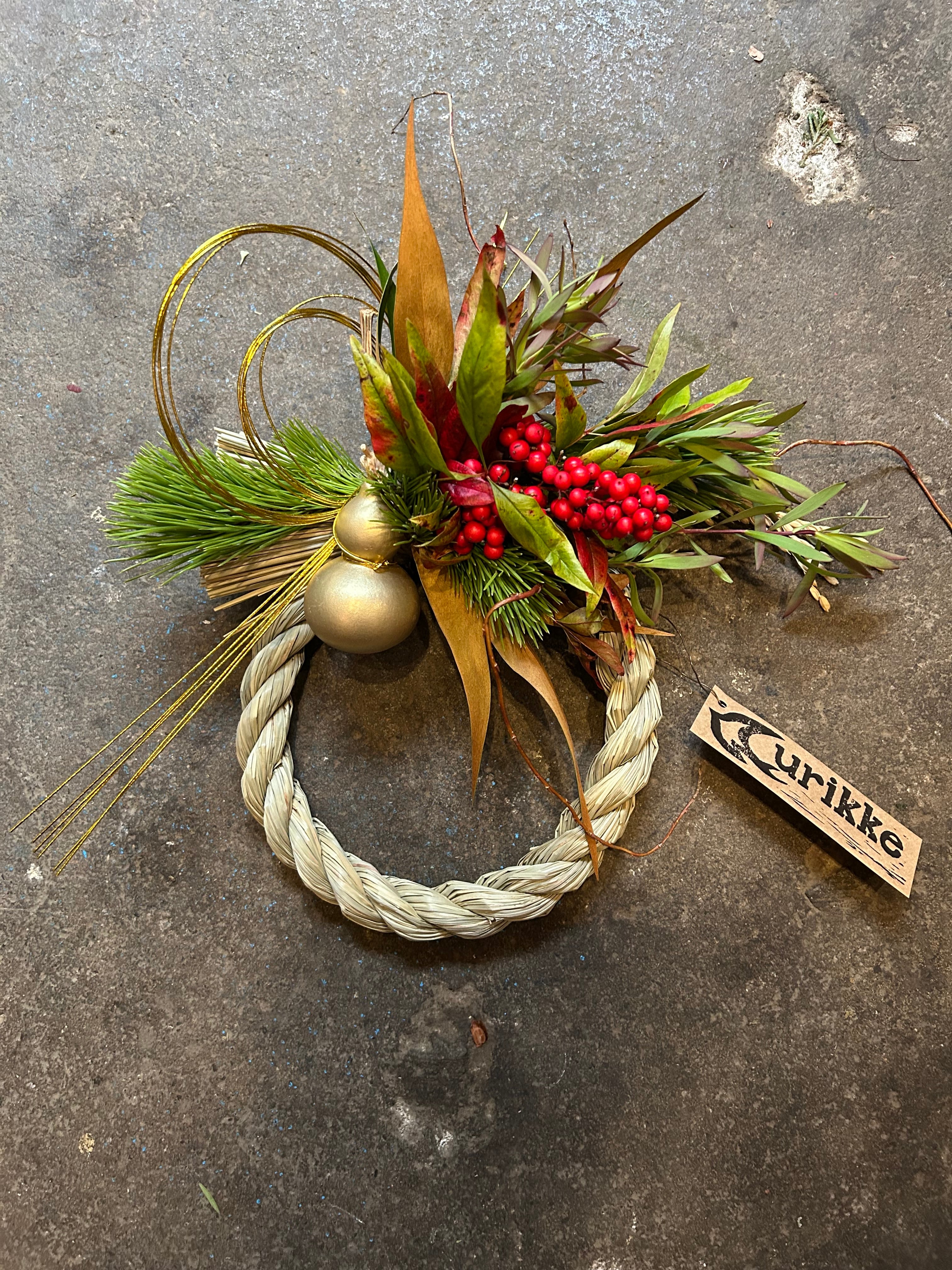 南天の実、おたふく南天、松、リューカデンドロン、ひょうたん